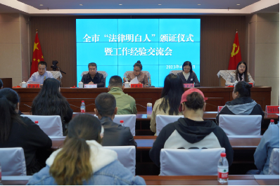会议颁发了“村(社区)法律明白人”证书和徽章及学习资料,来自三区的3名“村(社区)法律明白人”和1名“农区学法用法示范户”介绍了各自的工作情况。广大“村(社区)法律明白人”利用扎根基层、直接面对群众的优势,积极开展法治宣传、矛盾纠纷排查化解、法律服务、民主法治示范村(社区)创建等工作,充分发挥了社会治理“排头兵”、维稳源头“主力军”、政策法规“宣传员”的作用。农区学法用法示范户积极发挥政治素质高、法治观念牢、法治能力强的学法用法示范作用,将法治理念、法律知识送到了农村千家万户。
